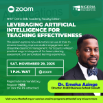Week Five featured a faculty-centered session titled Leveraging Artificial Intelligence for Teaching Effectiveness, again led by Dr. Emeka Azinge. Educators explored practical applications of AI in lesson planning, assessment, student engagement, and personalized learning, with a focus on improving teaching outcomes and classroom efficiency.