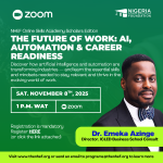 Week Three focused on The Future of Work: AI, Automation, and Career Readiness, facilitated by Dr. Emeka Azinge, Director of ICLED Business School. The session explored how artificial intelligence and automation are reshaping industries and highlighted the skills, adaptability, and mindsets required to remain competitive and relevant in the modern workplace.